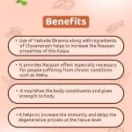 Each Coated Tablet contain choorna of Amalaki (Emblica officinalis) Fr. P. 400.00 mg, Pippali (Piper longum) Fr. 50.00 mg, Tvak (Cinnamomum zeylanicum) St. Bk. 20.00 mg, Tvakpatra (Cinnamomum tamala) Lf., Ela (Sookshma) [Elettaria cardamomum] Sd., Nagakeshara (Mesua ferrea) Stmm. each 10.00 mg, extract derived from Dashamoola [Bilva (Aegle marmelos) St. Bk., Gambhari (Gmelina arborea) St. Bk., Patala (Stereospermum suaveolens) St. Bk. Agnimantha (Clerodendrum phlomidis) St. Bk., Shyonaka (Oroxylum indicum) St. Bk., Shalaparni (Desmodium gangeticum) Pl., Prushniparni (Uraria picta) Pl., Bruhati (Solanum indicum) Pl., Kantakari (Solanum xanthocarpum) Pl., Gokshura (Tribulus terrestris) Fr.] 20.00 mg, Karkatashrungi (Pistacia integerrima) Gl., Draksha (Vitis vinifera) Fr., Guduchi (Tinospora cordifolia) St., Haritaki (Terminalia chebula) Fr. P., Bala (Sida cordifolia) Rt., Vidari (Pueraria tuberosa) Rt. Tr., Vasa (Adhatoda vasica) Lf., Karchoora (Curcuma zedoaria) Rz., Tamalaki (Phyllanthus niruri) Pl., Musta (Cyperus rotundus) Rz., Mudgaparni (Phaseolus trilobus) Pl., Mashaparni (Teramnus labialis) Pl., Punarnava (Rakta) [Boerhaavia diffusa] Rt., Kamala (Nelumbium speciosum) Fl., Varahi (Dioscorea bulbifera) Rt. Tr., Ashvagandha (Withania somnifera) Rt., Meshashrungi (Gymnema sylvestre) Lf., Jeevanti (Laptadenia reticulata) Rt., Shatavari (Asparagus racemosus) Rt. Tr., Ushira (Vetiveria zizanioides) Rt. each 2.00 mg and Yashada Bhasma 31.25 mg.