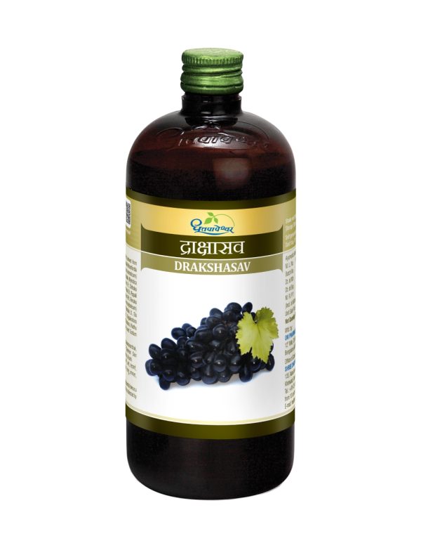Drakshasav is an excellent Agnideepak, Amapachak and Tridoshanashak. It is beneficial in Dhatuksheenata with the main ingredient ‘Draksha’ which is Madhur, Sheeta and Dhatuposhak. Useful in disorders of Pranavaha Srotas with the synergistic action of Draksha and ingredients like Maricha, Pippali, Lavang.