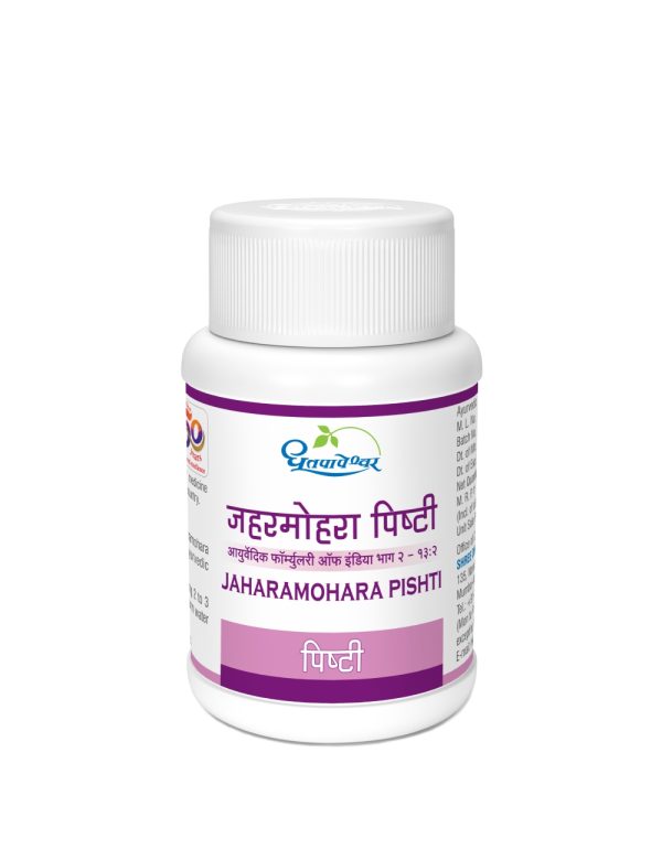 Jaharamohara Pishti is beneficial in disorders developed from Pitta and Agni Dushti. It is beneficial in symptoms related to digestive system like indigestion, burning sensation in the body, loss of appetite, loose motions etc.