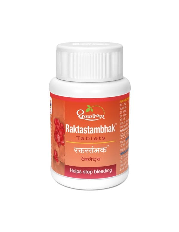 An excellent Haemostatic medicine for various Bleeding Disorders. Nagakeshar is a well known dravya for its Raktagata Pitta Pachan, Doorva acts as Pitta Shamak and other contents help stop Blood loss due to their Raktastambhan activity. Useful in all kinds of Raktapitta, Raktastambhak Tablets also minimizes tendency of bleeding due to its Raktaprasadan Karya.