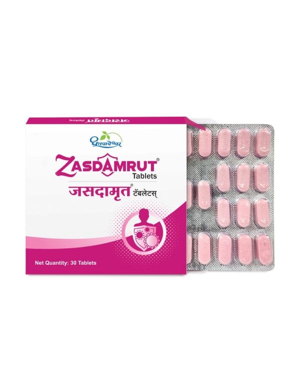 Zasdamrut is a Rasayana formulation based on Ayurved wisdom, for the management of acute and recurrent respiratory tract infections. It offers the benefits of Laghumalini Vasant, Sanshamani Vati, Tulasi, Amalaki, Haridra, Ashvagandha etc. which are known to alleviate respiratory infections and improve Vyadhikshamatva (Immunity).